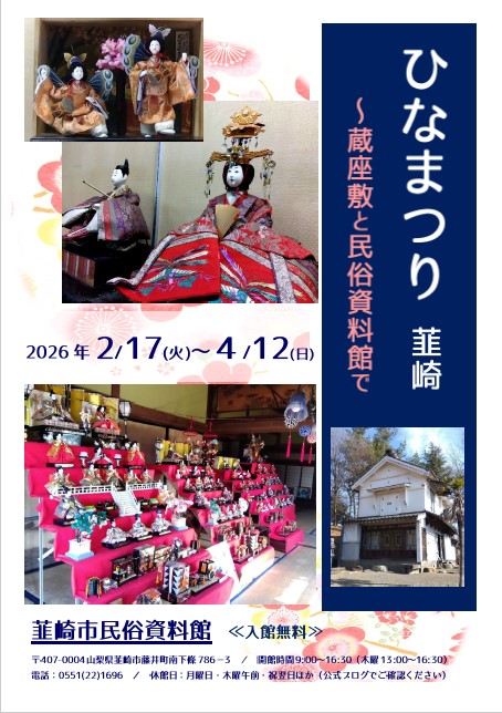 韮崎市民俗資料館 「ひなまつり展」イベントのお知らせ