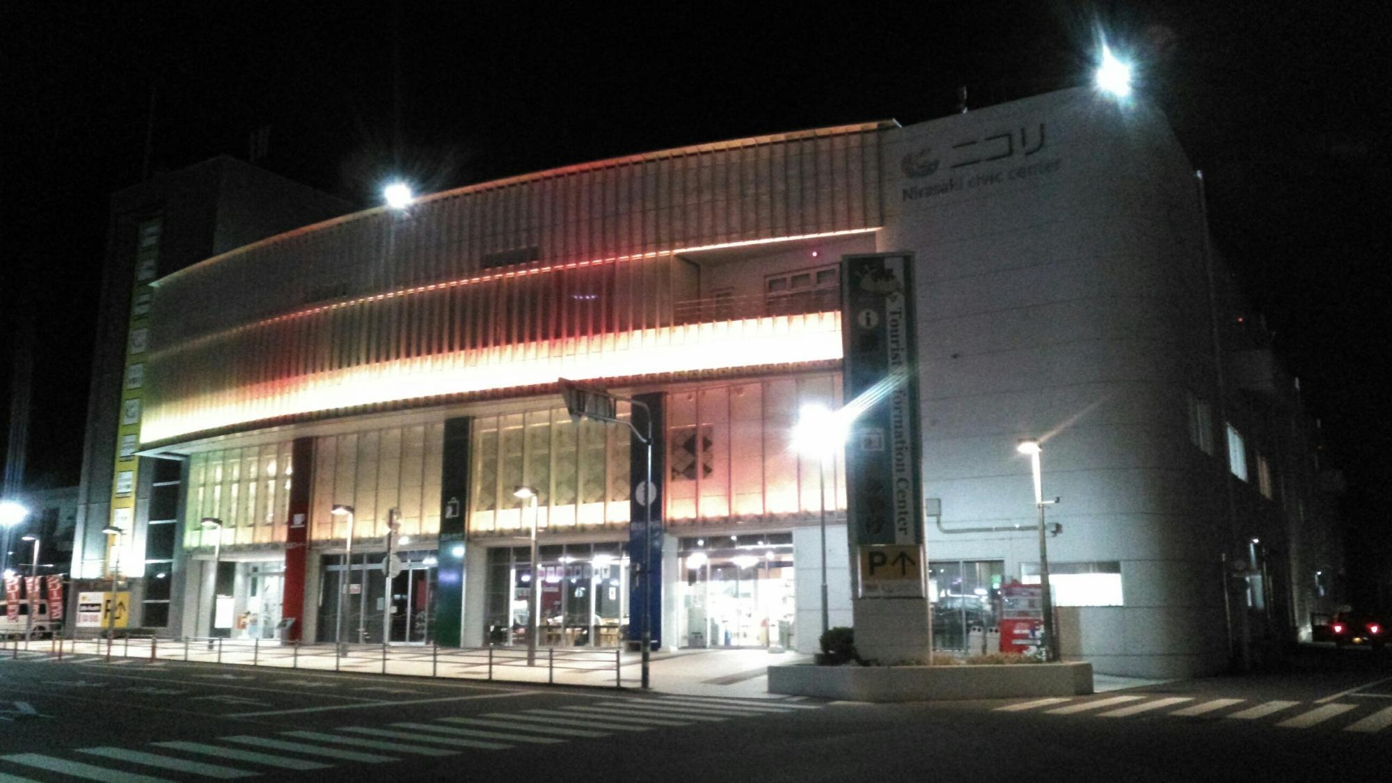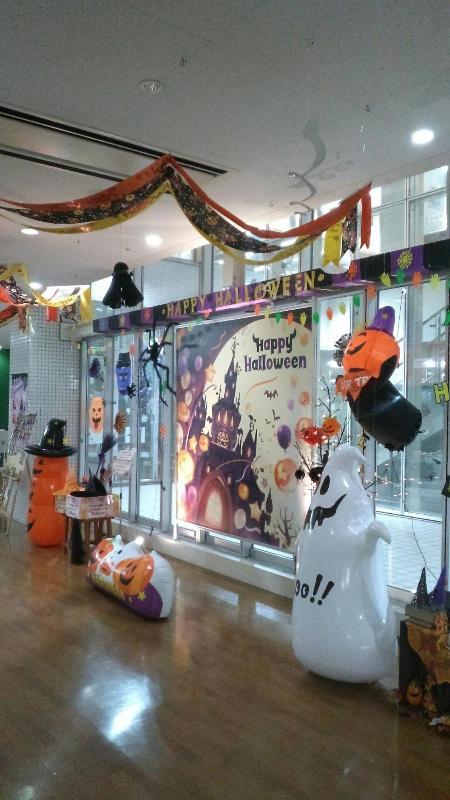 韮崎駅前にある市民交流センターニコリのイルミネーションがハロウィン色に輝いています。館内では大きなハロウィンパネルが設置されて行き交う家族連れを楽しませています。