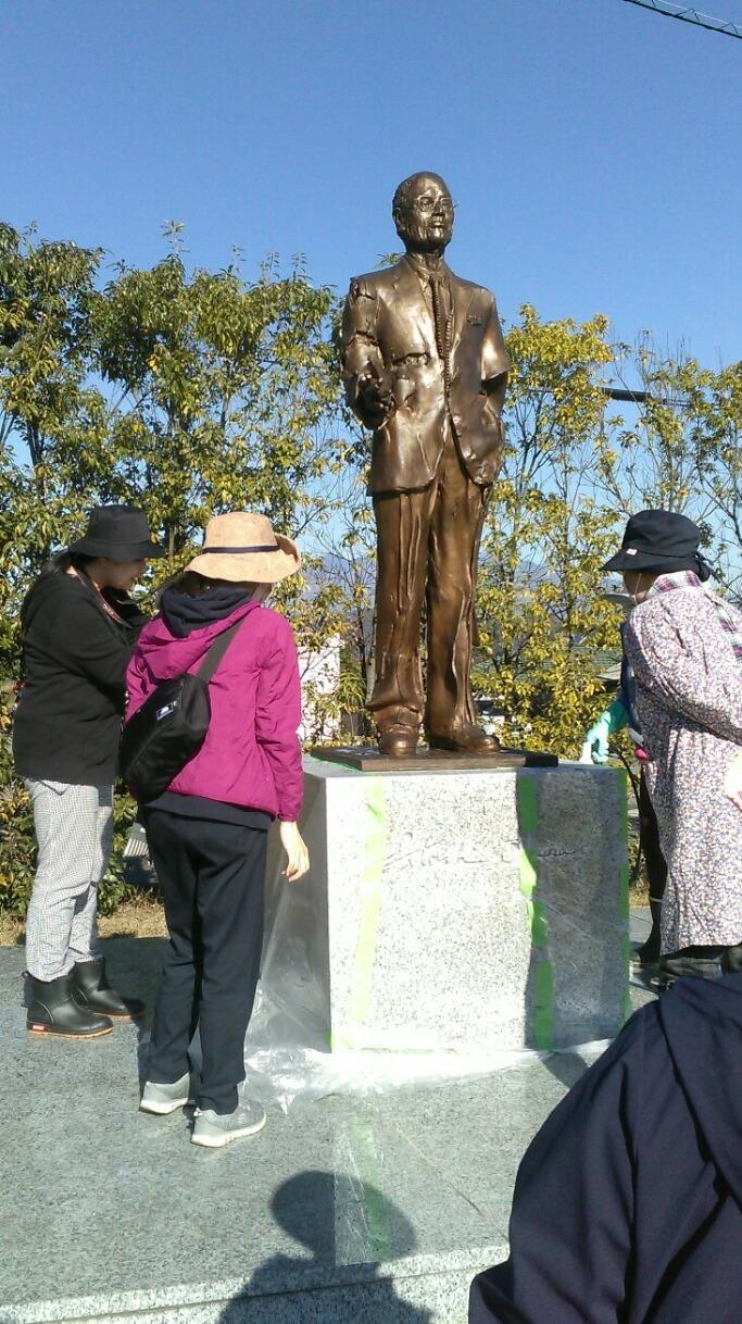 かつて大村智博士が中学生時代に歩いた通学路が2015年、博士のノーベル生理学・医学賞の受賞を記念して「幸福の小路」と名付けられました。誰もが優れた芸術作品に触れられるように小路内には9名の作家さんによる立体作品が設置されています。私は大村美術館で日常の空いている時間にボランティア活動をしています。その一環として半年に一度、小路内にある彫刻作品のメンテナンス作業があり、先日参加して来ました。