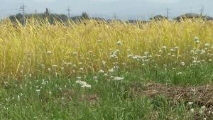 私の住んでいる韮崎市大草町にも稲刈りの時期が訪れました。私も幼少の頃に家族総出で稲刈りをした記憶が残っています。田んぼのあぜみちでおやつを食べたり、ここでしか味わえない収穫の楽しさや喜びを分かち合うことができます。今の季節になるとニラの花も咲き始めて韮崎市特有の昔と変わらぬ風景を眺めることができます。